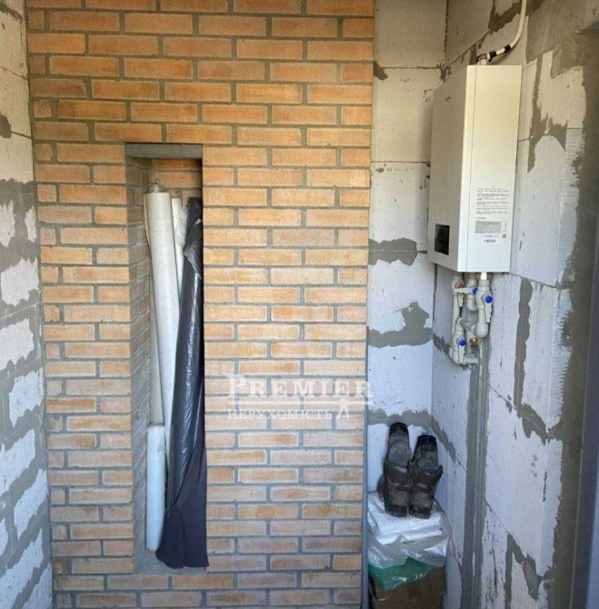 Побудований з газобетону товщиною стін 40см, високі стелі, перекриття з пустотних плит, цегляний вент. канали, м'яка покрівля.
