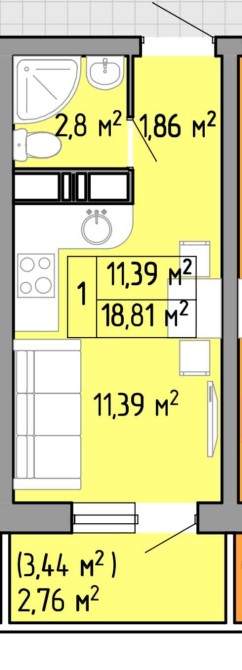 • Загальна площа 19 м2