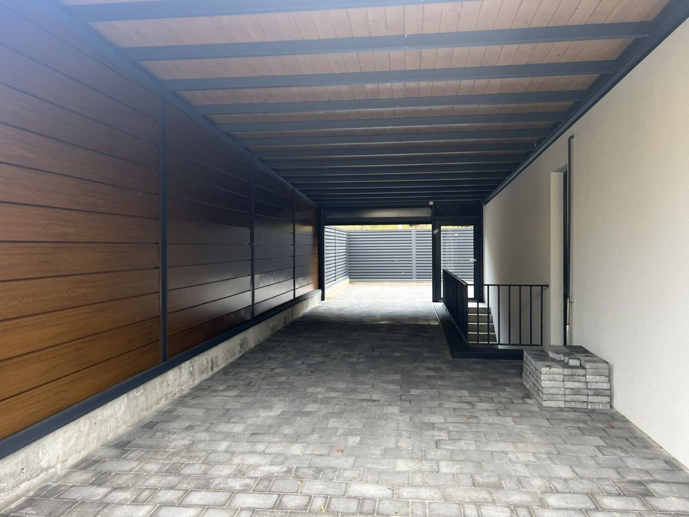 Встановлені автоматичні ворота та навіс на 2 авто.