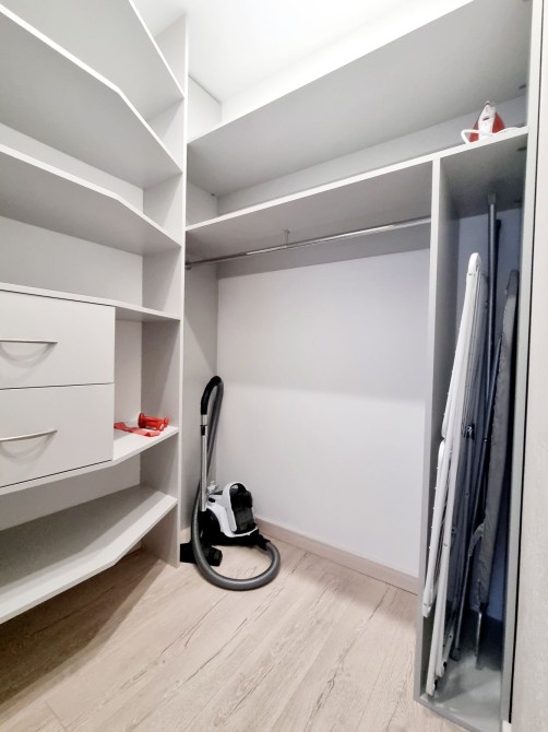 Спальня с гардеробной. Кровать с коробом для хранения.