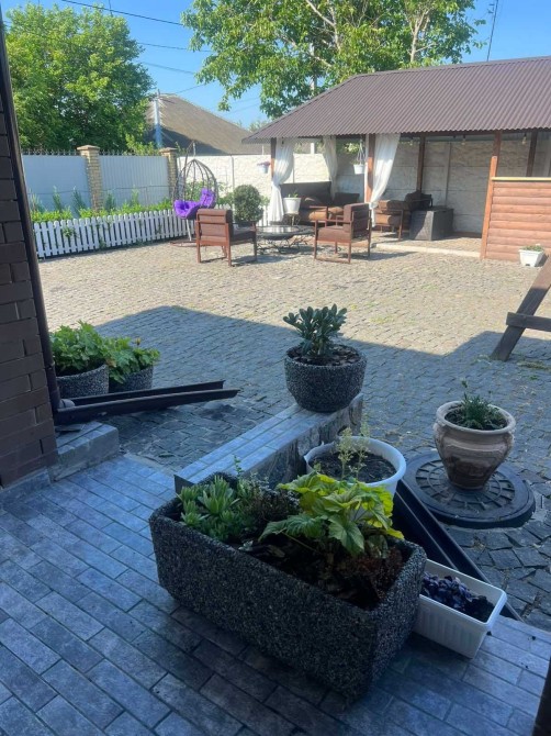 Продається з меблями та технікою. На подвір'ї - ландшафтний дизайн, простора альтанка, є гараж. Система відео спостереження та охорона. Під'їзд до будинку -асфальт.