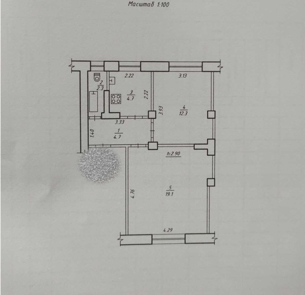 • Площа кухні 5 м2