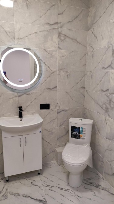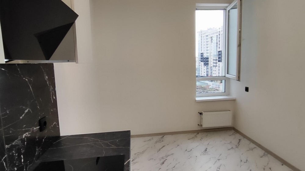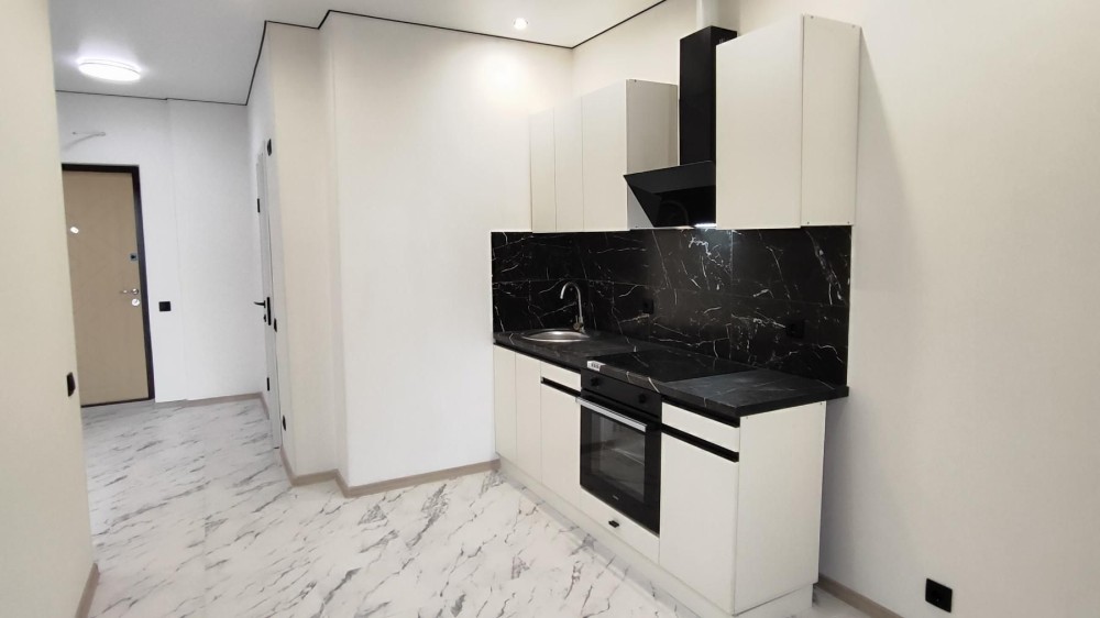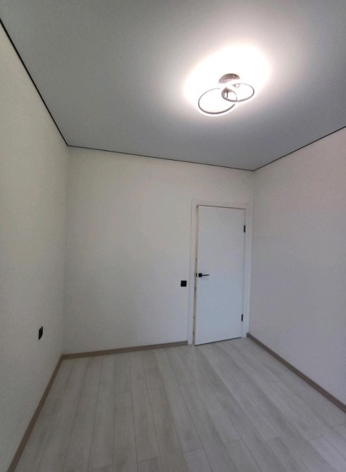 Площа квартири — 33 квадратних метри. Планування лаконічне і зручне: простора кімната, окрема зона кухні, санвузол і місце для зберігання речей. Вже виконано якісний сучасний ремонт у світлих тонах. На підлозі — комбінація ламінату та плитки, на стінах — стильні шпалери, які створюють затишну атмосферу. Натяжна матова стеля додає простору та легкості.