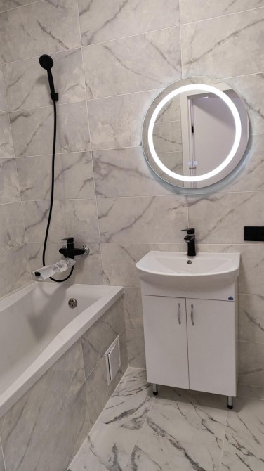 Санвузол облицьований імпортною плиткою, встановлена сантехніка. Кухня вже обладнана — вбудовані меблі, техніка, усе нове, акуратне, продумане до дрібниць. Цей простір не потребує жодних додаткових вкладень — тільки ваші речі й бажання жити у власному ритмі.