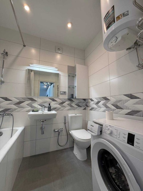 Стиральная машина, бойлер, большой холодильник, кондиционер, вместительные шкафы, полный набор необходимой посуды, огромная двухспальная кровать с ортопедическим матрац и прочее качественное наполнение.
