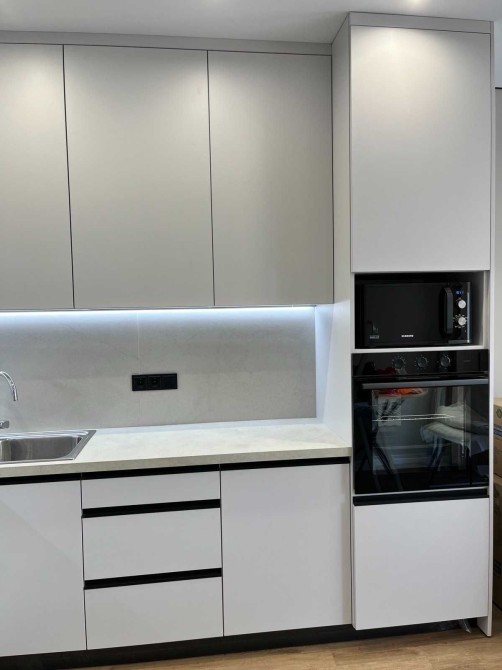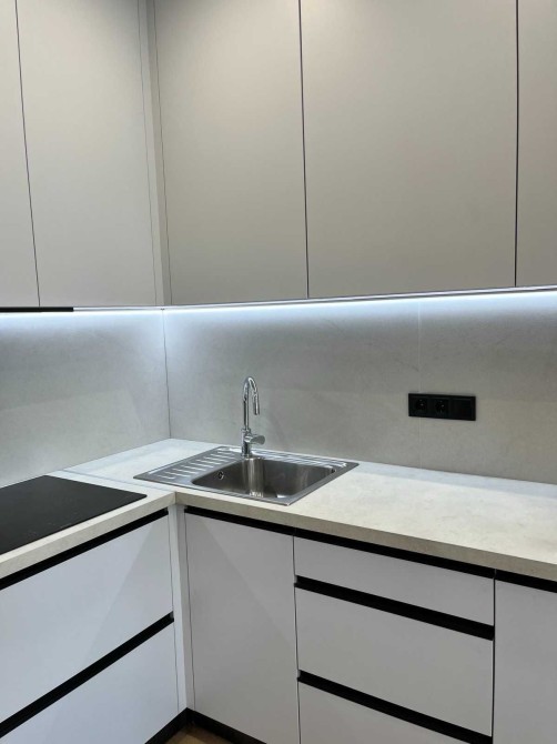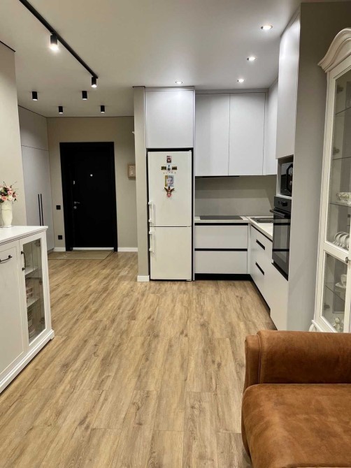 Квартира знаходиться на третьому поверсі. Загальна площа 43 кв.м. Вдале плануванння:велика кухня -вітальня та спальня.Санвузол суміжний,якісна сантехніка. Підігрів підлоги у санвузлі. Вбудована кухня з побутовою технікою .Фасад кухні із італійських матеріалів.Ліжко з натурального дерева. 2 великі шафи: в спальні та в коридорі.Квартира тепла,світла з хорошою енергетикою