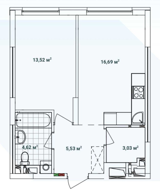 • Площа кухні 13.52 м2