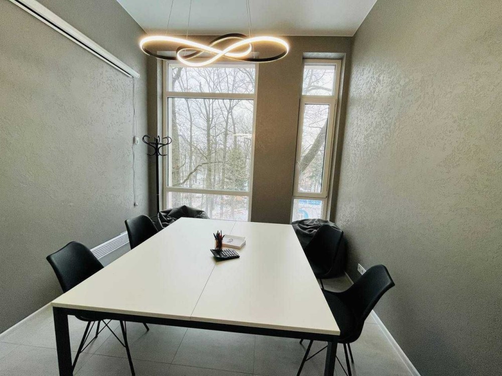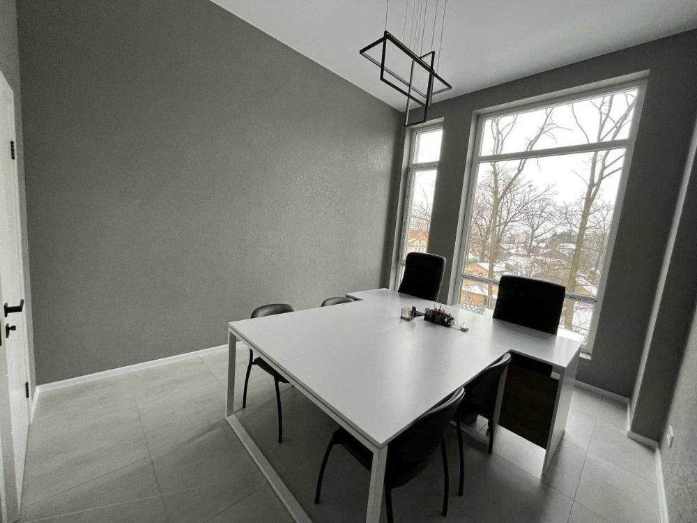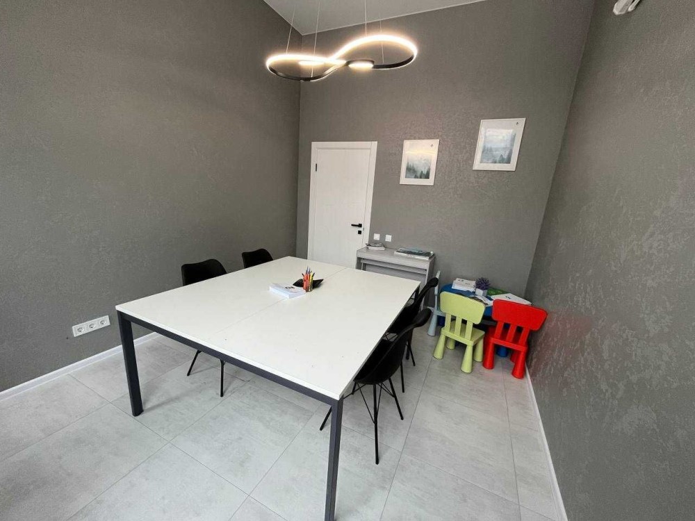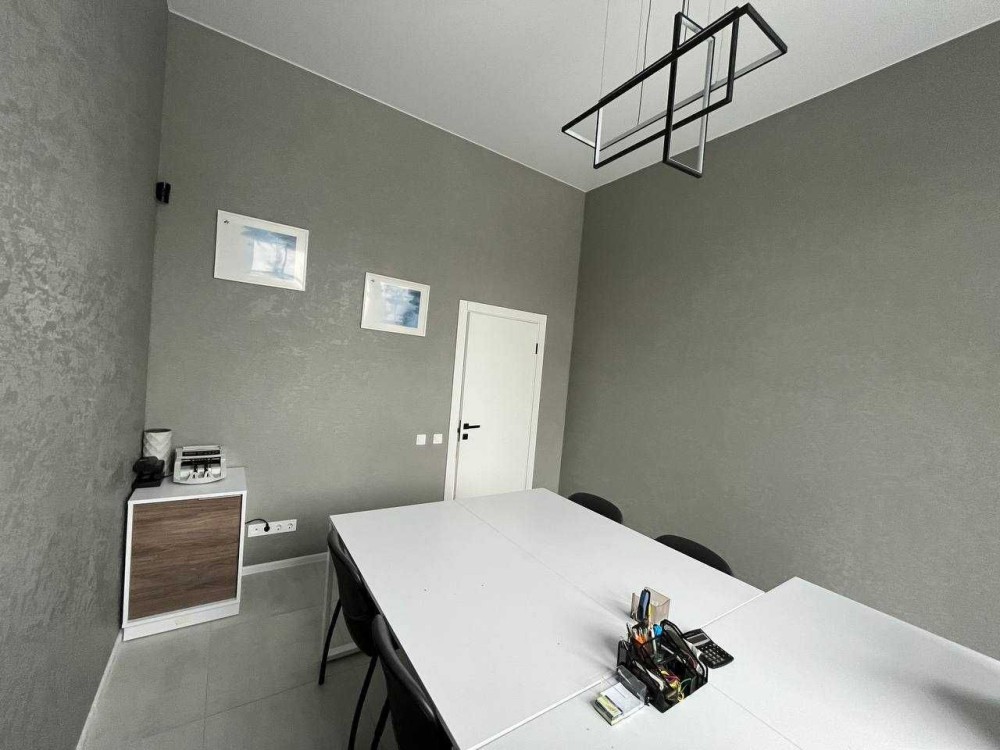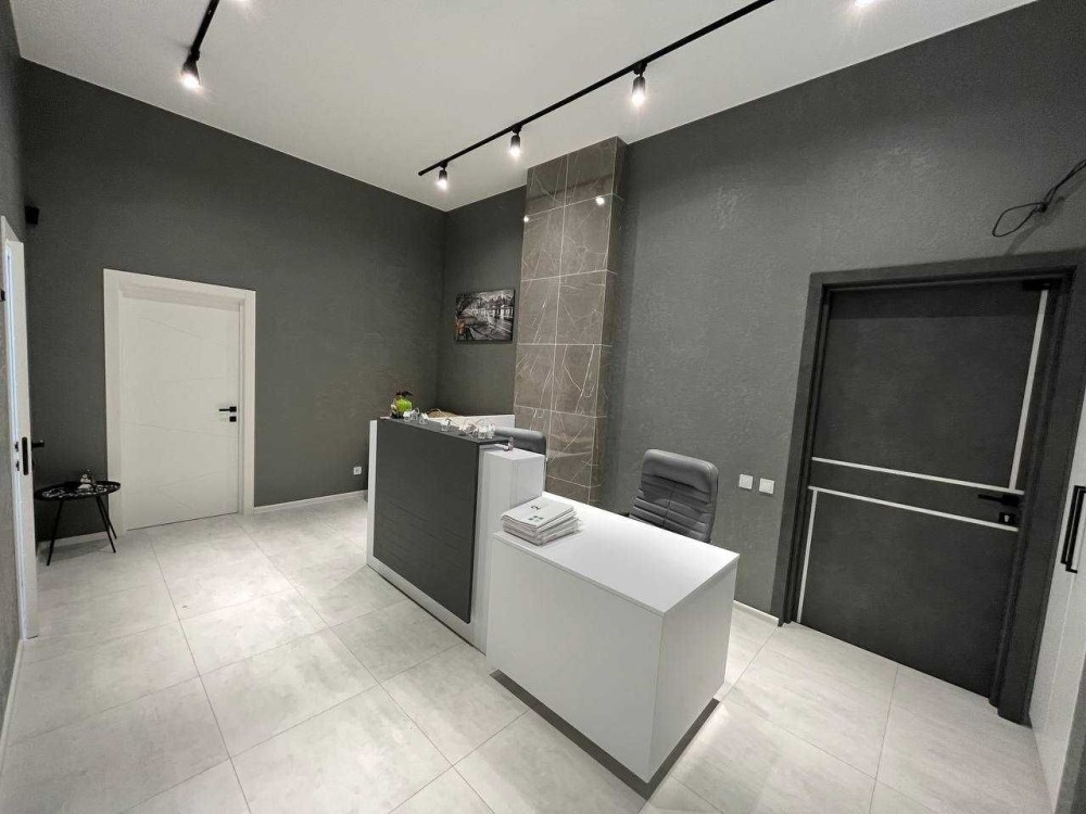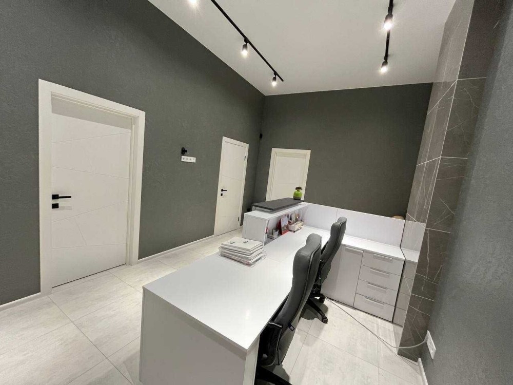 Загальна площа 76м2. Приміщення складається з просторого холу та 3-х окремих кабінетів: кімната для робочого простору на 10 місць, окремого кабінету керівника, переговорний, просторий хол з рецепшеном, і невелика вбудована кухня, яка окремо відділена розсувними дверима.