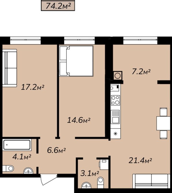 • Загальна площа 75 м2