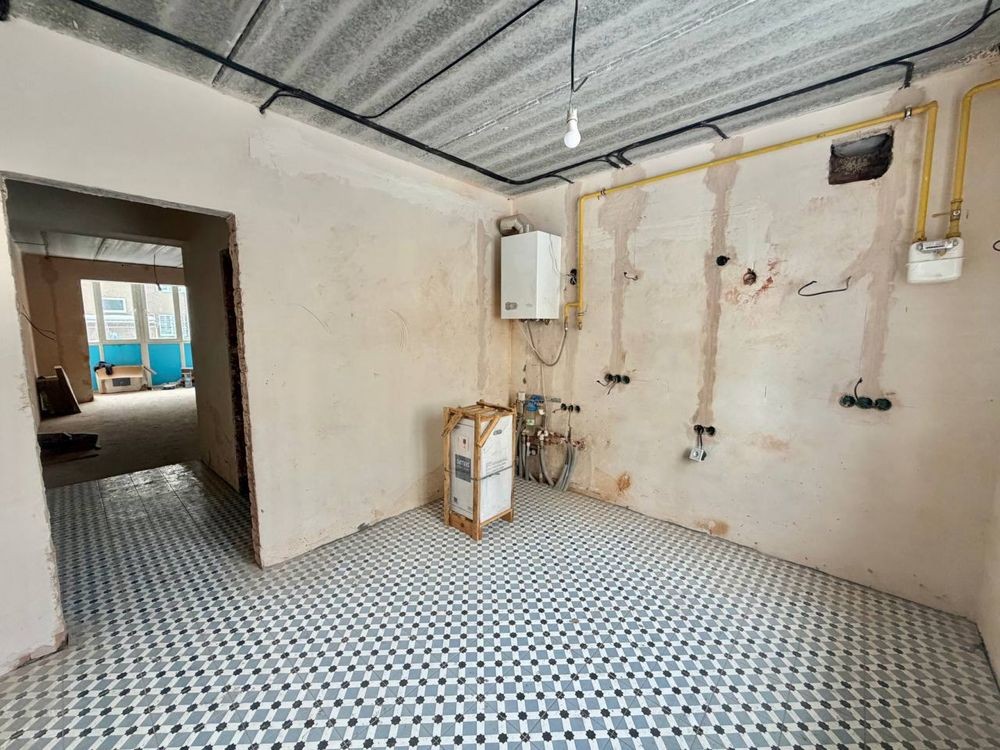 Площа квартири 47м2 , в квартирі є штукатурка стін, на підлозі лежить плитка , є ламінат для кімнати.
