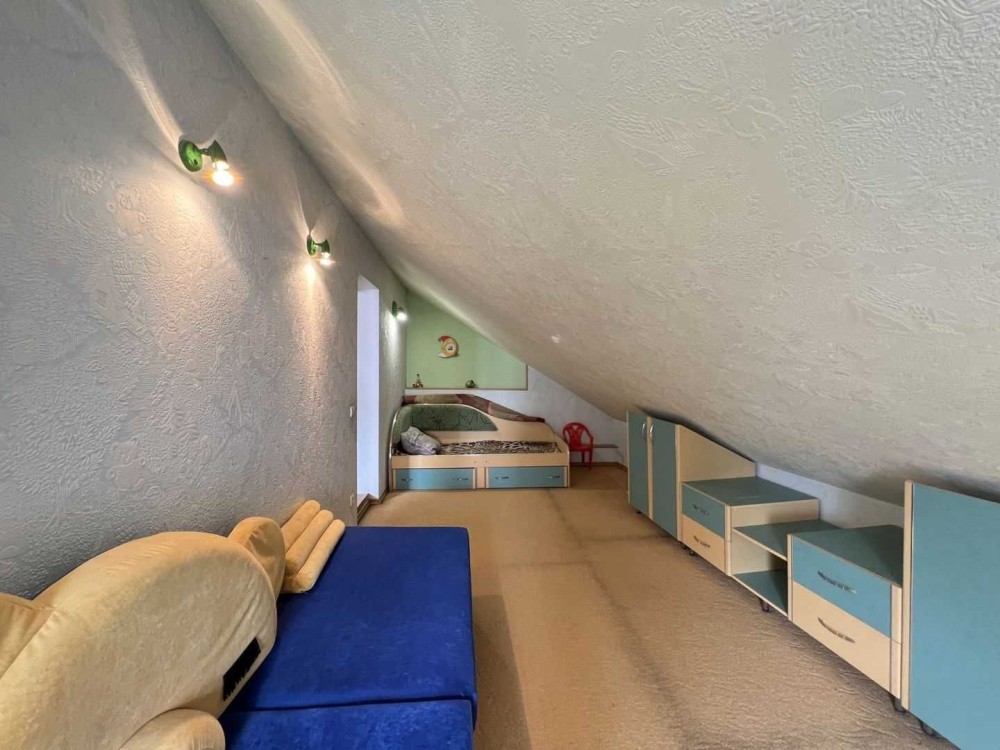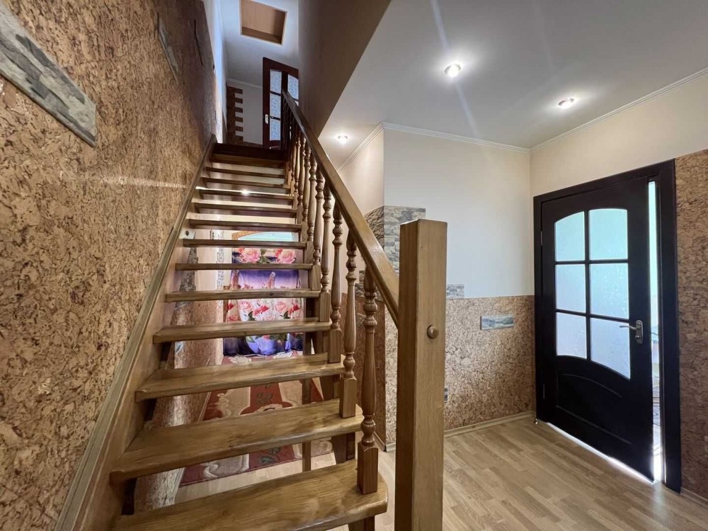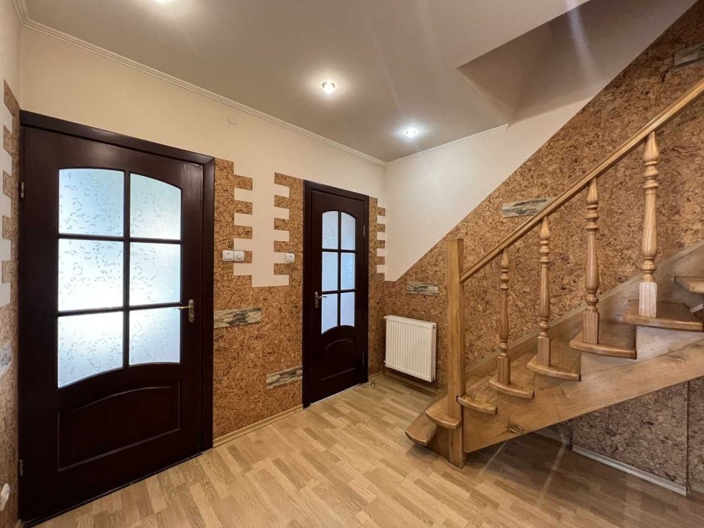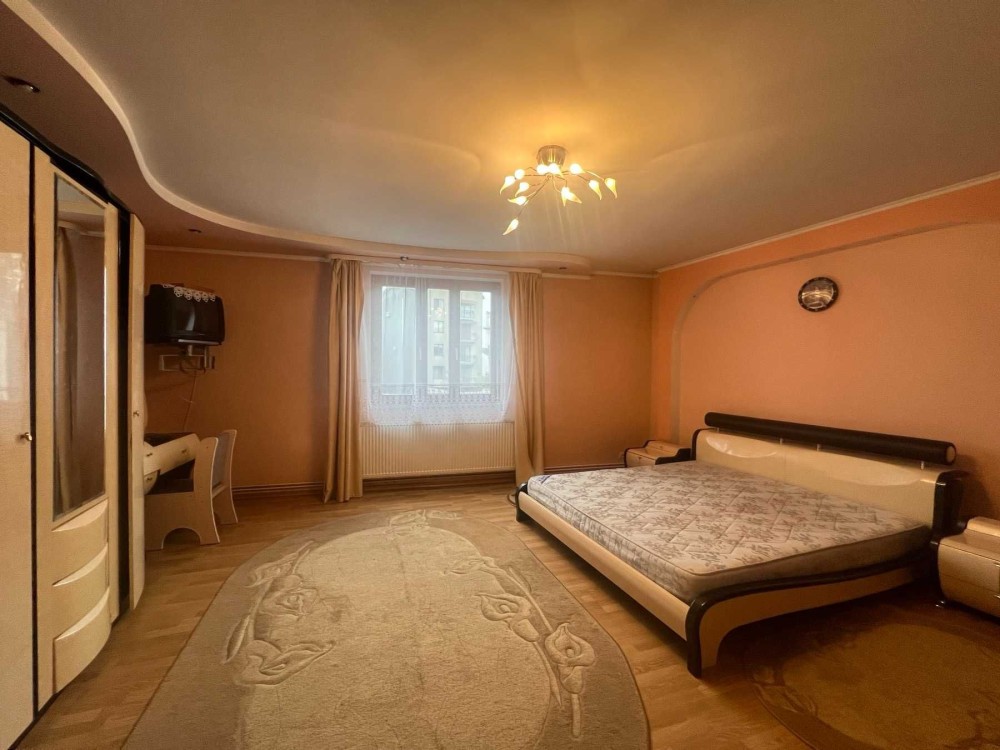 Помешкання з просторою спальнею, двома кімнатами, кухнею, ванною, окремою прихожою, сходовою. Гардеробна.