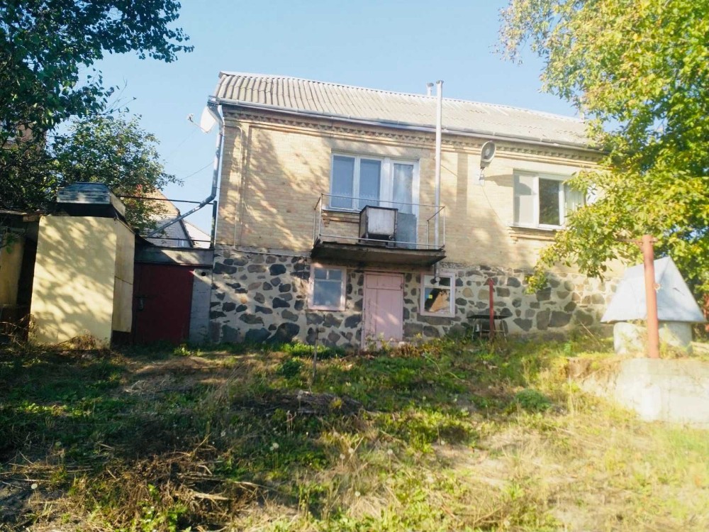 Площа 110 квадратних метрів, повноцінний цокольний поверх з граніту, ділянка 12 соток. Гарний заїзд, колодязь, погріб, гараж, газове опалення (котел), сарай на два входи, газова колонка, вигрібна яма.