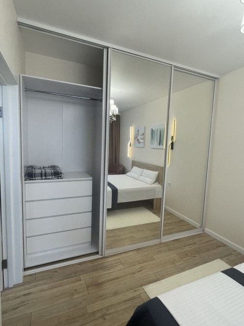 У квартирі зроблений дизайнерський стильний та якісний ремонт. Кухня повністю обладнана технікою: холодильник, духова шафа, варочна поверхня. Встановлено телевізор Samsung. Є містка гардероба шафа на три відділення, двоспальне ліжко, диван, кондиціонер. LED освітлення. Бойлер із режимом швидкого нагріву, пральна машинка, велика ванна. Підлога з обігрівом. Є лічильники на все, включаючи опалення, що дозволяє зменшити комунальні витрати.