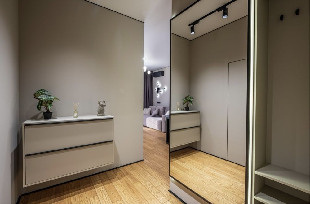 Всі корпусні меблі власного виробництва на індивідуальне замовлення на найкращій фурнітурі Blum з австрійських матеріалів. Величезна містка шафа завдяки переплануванню