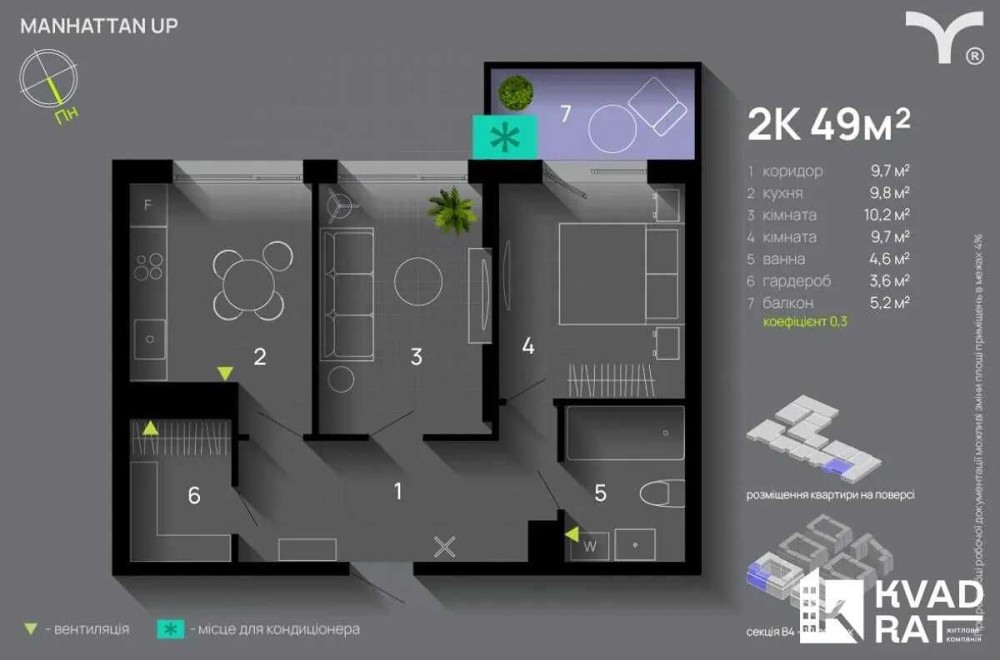 • Загальна площа 49 м2