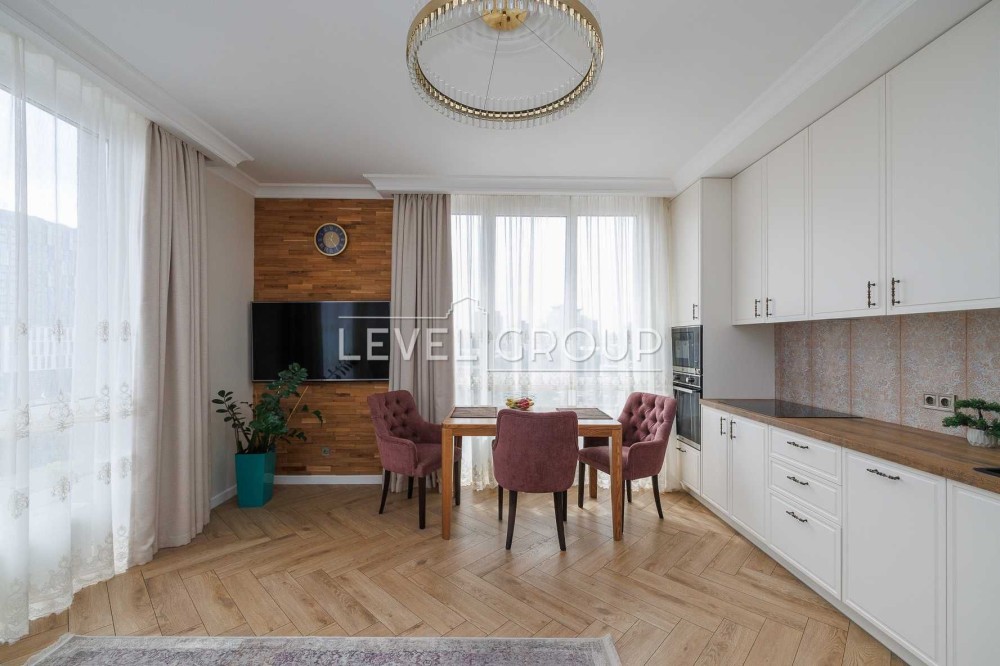 Квартира з якісним ремонтом в якому майже не жили, укомплектована меблями та технікою провідних світових брендів (меблі зі спальної кімнати забиратимуть, і телевізор з обіднім столом та стільцями). Великі панорамні вікна, вікна на Пд.-Сх. сторони. Техніка: Siemens - холодильник, Franke - мікрохвильова піч, духова шафа, варочна поверхня, раковина змішувач, Hotpoint Ariston - посудомийна машина, Atlantic - бойлер. Комплекс з закритою територією від сторонніх машин, є підземний паркінг, відеонагляд на території та на поверхах. Зручне розташування 10 хв. до ст. М Лук'янівська, 15 хв. до ст. М Контрактової площі.