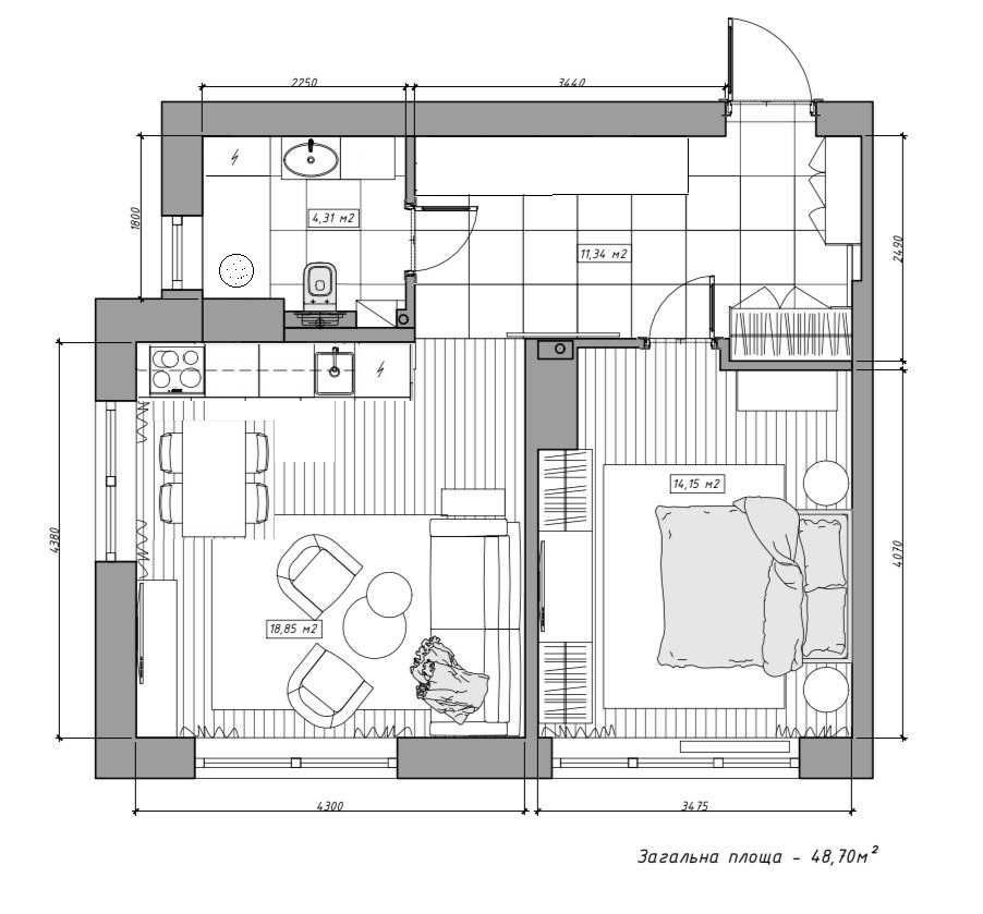 • Загальна площа 50 м2