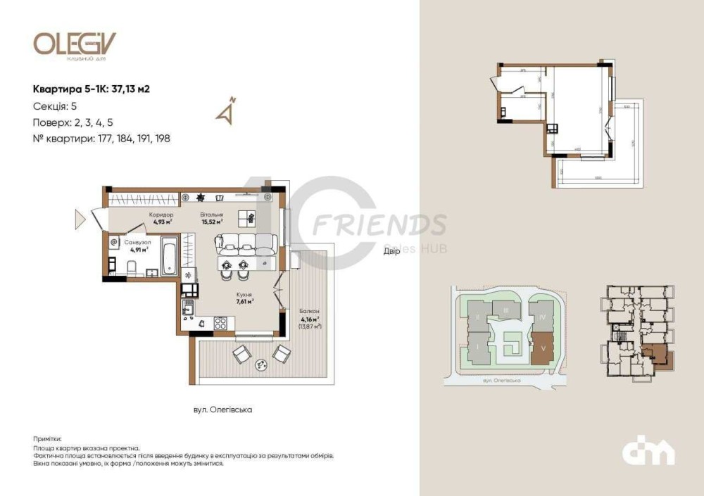 Видова панорамна квартира в ексклюзивному багатофункціональному комплексі бізнес-класу ЖК Olegiv Podil на 5 поверсі загальною площею 37,13м2. Будинок розташований на найвищій точці гори Щекавиця, звідки відкривається чудова панорама на Подол та весь Києва.