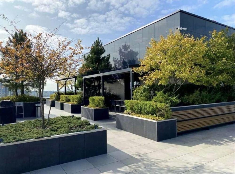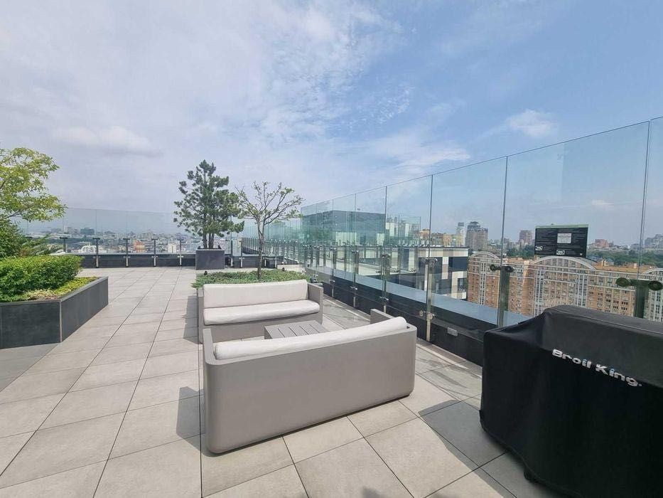 Презентабельна вхідна група, кінотеатер, переговорна кімната, спортзал. Закрита територія від авто та сторонніх, на території є спортивні та дитячі майданчики, фонтан, паркова зона, велика галявина для пікніків, а на даху - басейн, шезлонги і барбекю зони, висота стель 3 м, великі панорамні вікна, трирівневий підземний паркінг