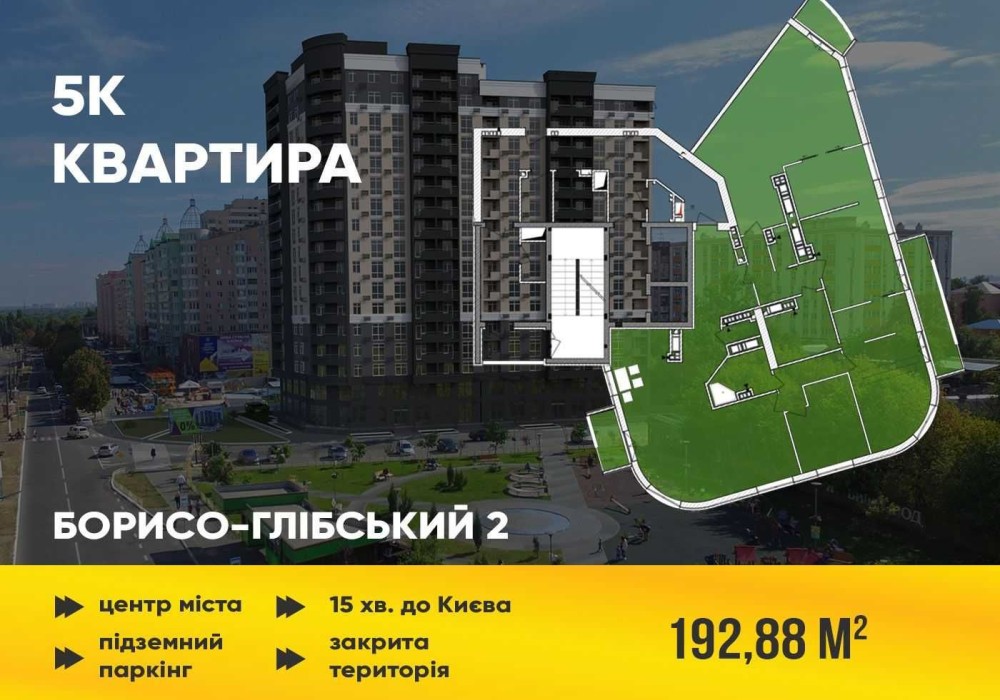 Продаж ексклюзивного 5-ти кімнатного пентхаусу площею 175.45 м2 в центрі міста Вишгород ЖК «Борисо-Глібський» кор.2. вул. Шкільна 42