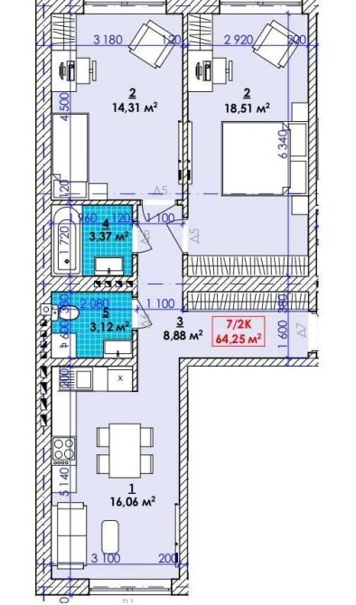 • Загальна площа 64 м2