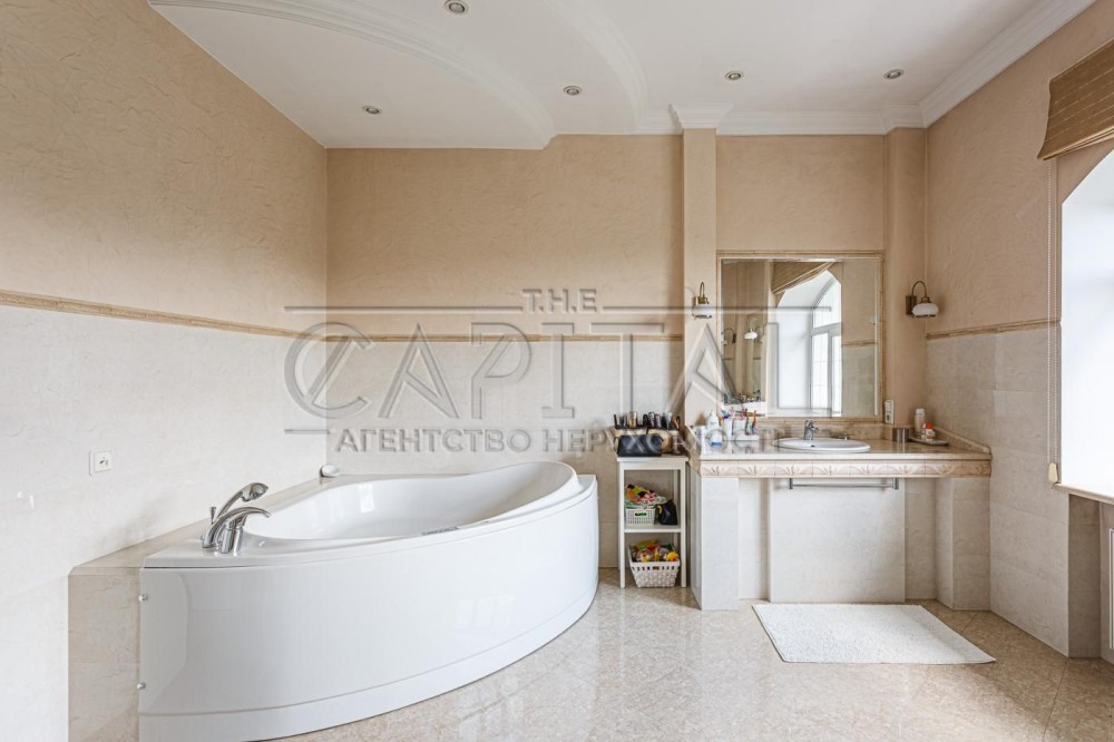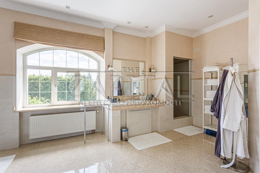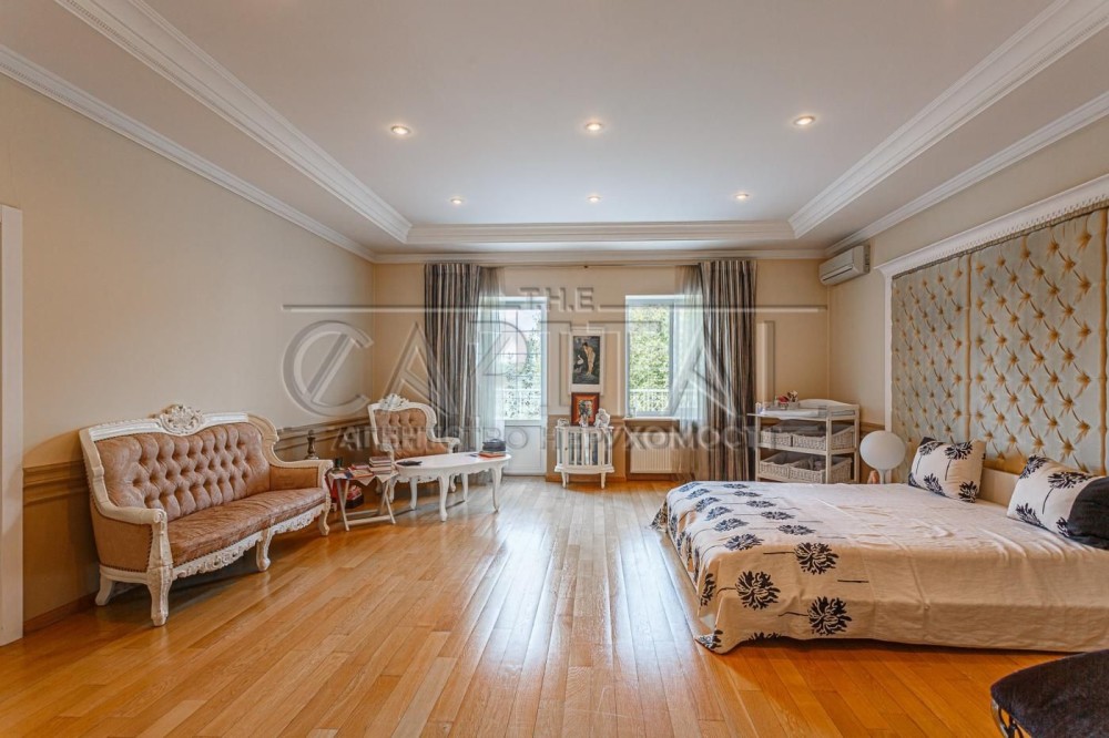 На другому поверсі розташована велика майстер-спальня з виходом на балкон, двома гардеробними та великим санвузлом із джакузі та душовою, дві дитячі кімнати з власним гардеробом та санвузлом, гостьова кімната із санвузлом та велика кімната з виходом на терасу вільного призначення!