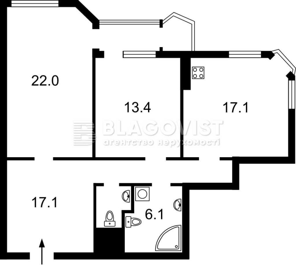 • Площа кухні 17 м2