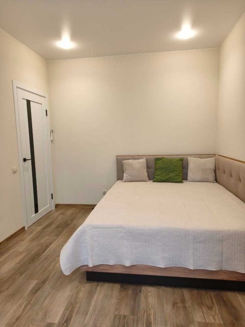 ​Спальня: Затишне двоспальне ліжко з ортопедичним матрацом, свіжа постільна білизна, панорамні вікна.