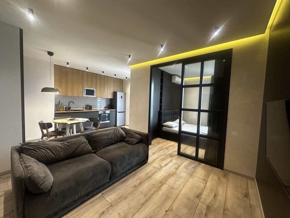 Ексклюзивна 1-кімнатна квартира. В самому центрі міста в новому елітному будинку Дельмар з відеоспостереженням та охороною, щойно закінчено дизайнерський ремонт.