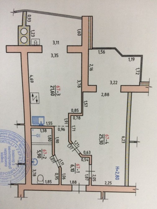 60 м.кв однокімнатна