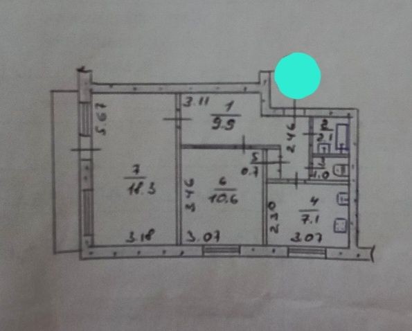 • Площа кухні 7.1 м2
