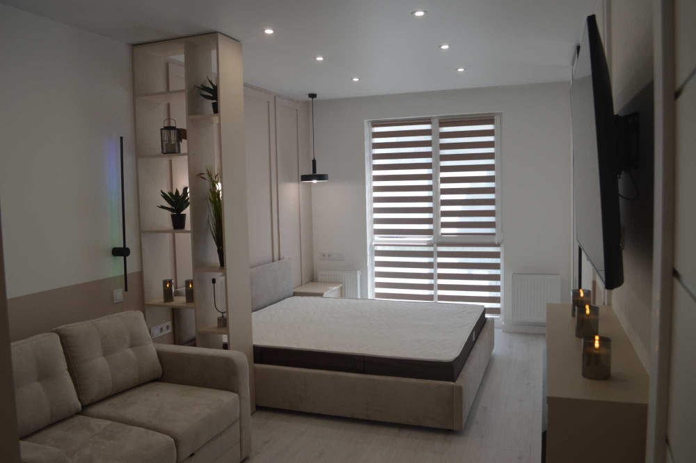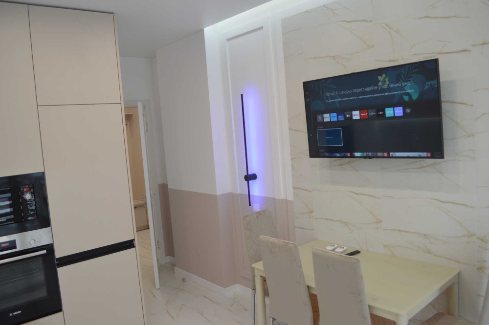 Переваги квартири:• Повністю укомплектована меблями та технікою;• Кондиціонер для комфортної температури в будь-яку пору року;• Індивідуальне опалення з підігрівом підлоги там, де плитка;• Електричний камін;• Сучасний дизайнерський ремонт у світлих та теплих тонах;• Продумане функціональне планування: окрема спальня, величезна кухня-вітальня;• Простора кухня-студія з усім необхідним обладнанням (вбудовані посудомийка, духова шафа, газова плита, мікрохвильова піч, великий холодильник) та обідньою і відпочинковою зоною з великою плазмою;• Комфортна спальня з плазмою, шафою-купе та відокремленою зоною з туалетним столиком і стільцем;• Якісна сантехніка та багато освітлення, що створює атмосферу затишку;• Швидкий інтернет (оптоволокно).