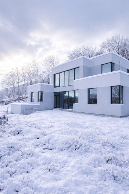 Будинок побудований з червоної цегли, що забезпечує міцність, високу теплоакумуляцію і довговічність. Монолітні перекриття, якісний фундамент, фасад з керамограніту й термодерева. Панорамні енергозберігаючі вікна відкривають вид на всі сторони. Покрівля ПВХ мембрана. У вітальні простір і світло відчуваються одразу.