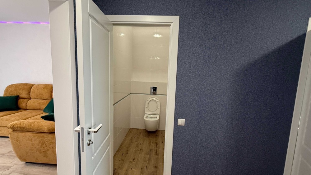 Всі тумби у ванній та туалеті підвісні, без ніжок, для зручного миття підлоги.