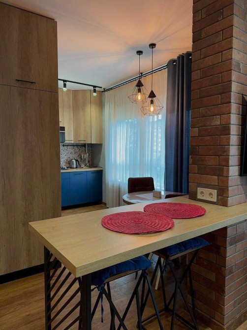 Оренда стильної 1 к кв з кухнею студією в новому будинку ЖК "Файна Таун" в Шевченківському районі, вул. Салютна, 2 Квартира 43 м2 , розташована на четвертому поверсі та складається з передпокою, спальні, великої кухні -студії та санвузла. Вікна квартири виходять в двір. Облаштована всіма необхідними меблями з екологічно чистої деревини та оснащена побутовою технікою: телевізор Samsung Smart 43, кондиціонери в кухні та кімнаті, плита індукційна, вбудований холодильник, духова шафа з функцією мікрохвильової печі, пральна машина з сушаркою. В кухні та ванній кімнаті тепла підлога, високошвидкісний інтернет. ЖК "Файна Таун" це: закрита територія з входом по картці, цілодобова охорона, відеоспостереження, паркінг, підземні контейнери для сміття, зарядні станції для електромобілів та лавки з інтегрованими батареями для підзарядки девайсів, розумне освітлення, яке підлаштовується під час доби та ще багато чого для того, щоб жити з комфортом й ні в чому себе не обмежувати) розповім при перегляді. Зручне транспортне сполучення та розвинута інфраструктура: магазини,спортивні та пішохідні зони ,зона барбекю, ресторани та кафе. Квартира, в якій поєднані комфорт та затишок, шукає своїх порядних орендарів молоду пару або одну людину без дітей та тварин. Перша оренда, квартира вільна.