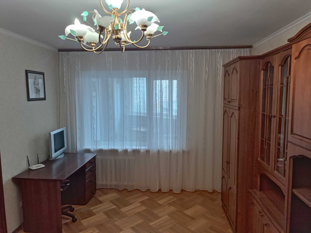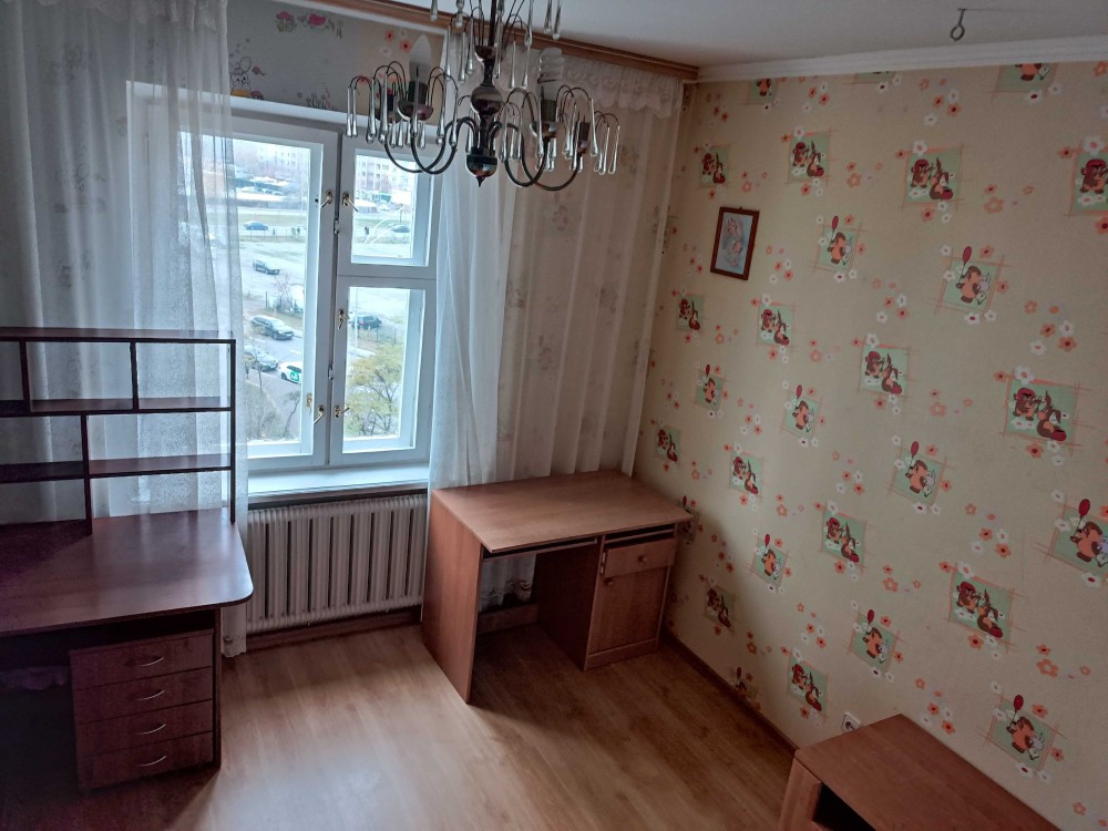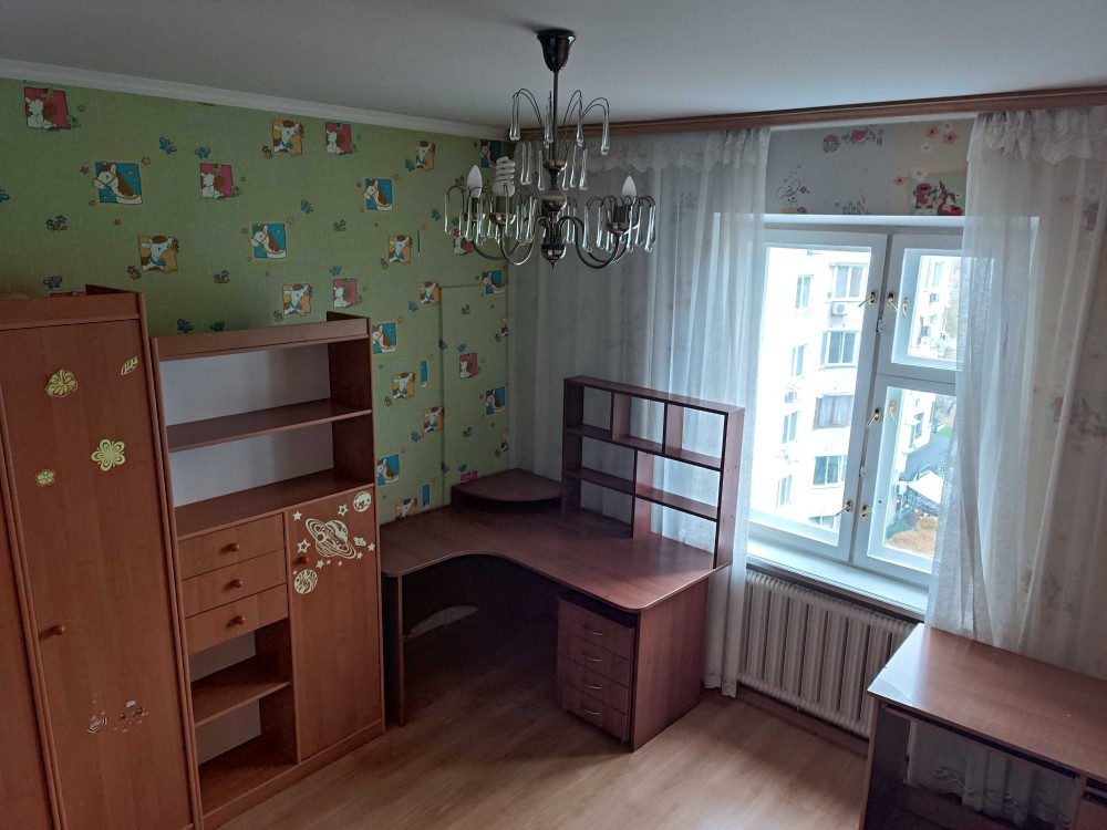 Три кімнати: дитяча спальня з балконом, кабінет, великий холл, кухня зі столовою. Санвузол роздільний, ванна.