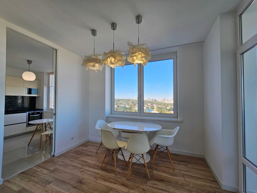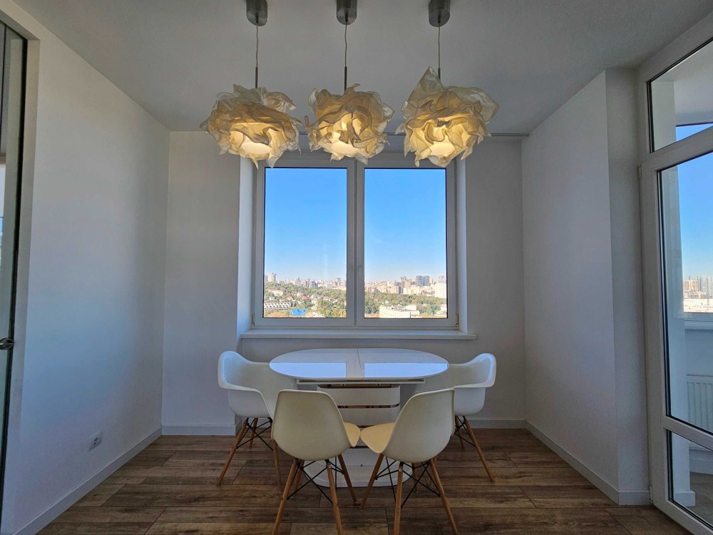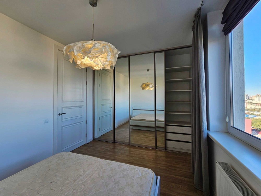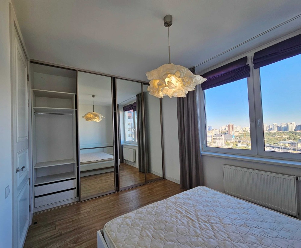 — видова спальня з вікнами на Деміївську площу, бульвар Дружби Народів, завод Roshen, ТРЦ Ocean Plaza