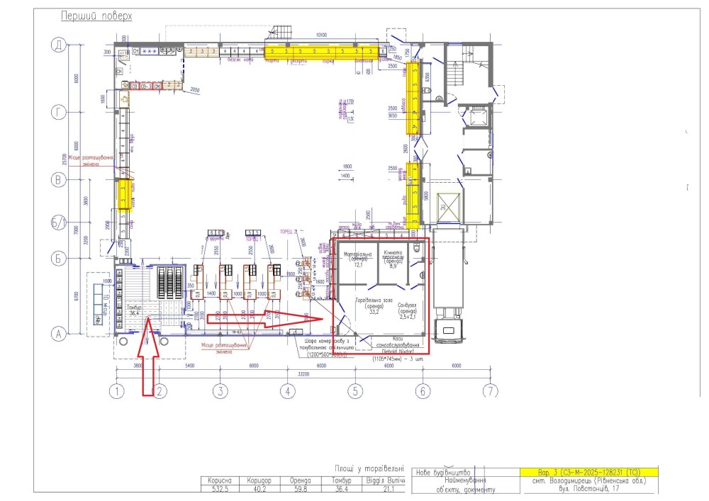 58.8 м2. - Рівенська обл., м. Володимирець, вул. Повстанців, 17 - відкриття магазину АТБ лютий 2026.
