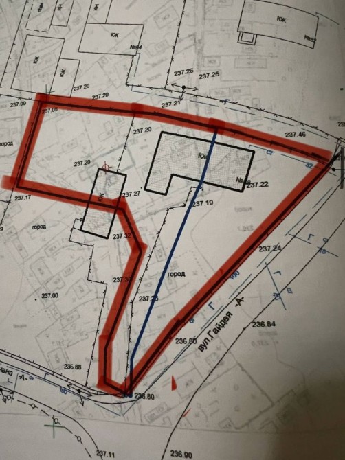 Продається земельна ділянка 7,4 сотих разом з будинком. Можна будувати новий будинок план є.