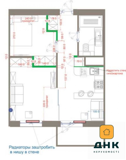 • Площа кухні 18 м2