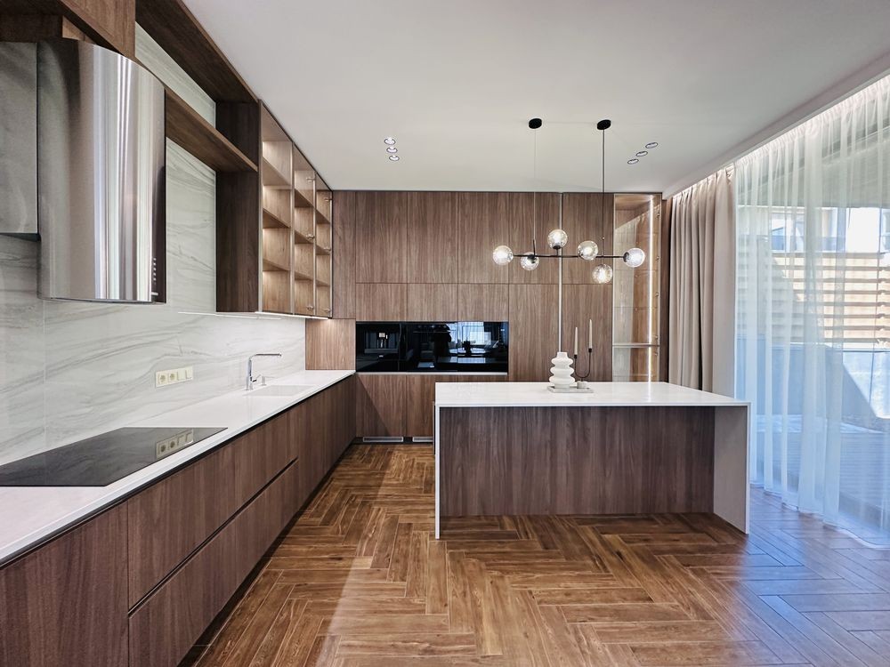 - вбудована кухня, фасади Saviola, стільниця з каменю, фурнітура Blum