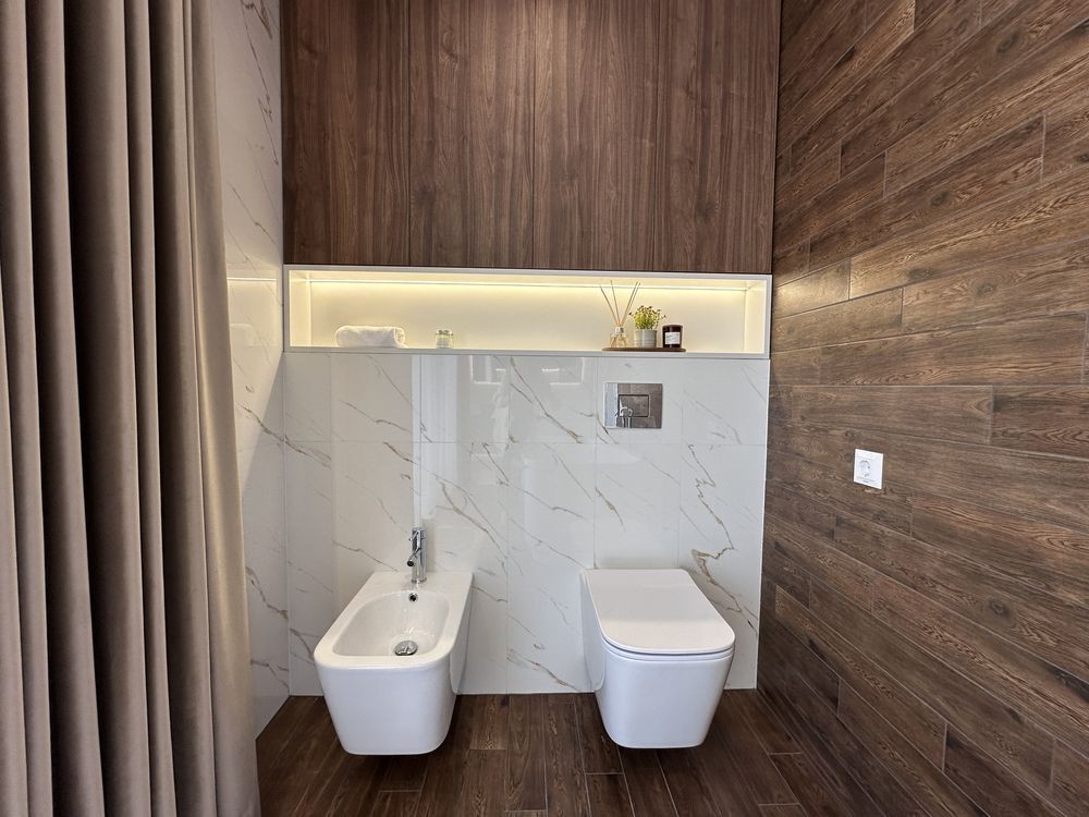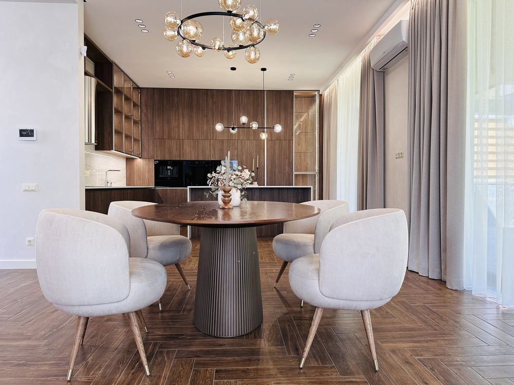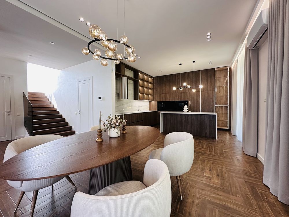 - 4 кімнатне планування, 3 санвузли, 2 гардеробні, технічне приміщення, кухня з вітальнею