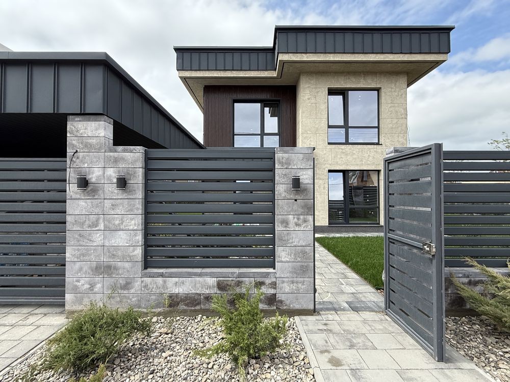 Побудований з червоної цегли, монолітні сходи та перекриття. Паркан на бетонному фундаменті, автоматичні ворота, хвіртка.