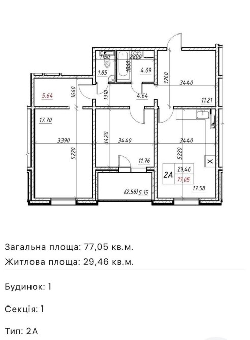 • Загальна площа 77.2 м2