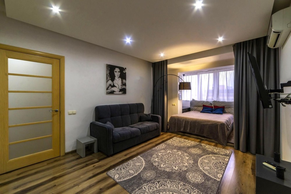 Площа кухні — 13,9 м², ванної кімнати — 5,1 м², спальні — 20 м², коридору — 5,4 м².