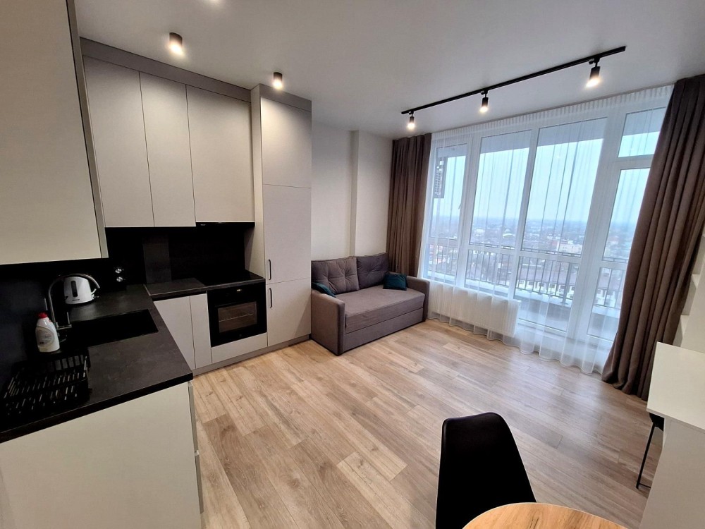 # 32139 Продаж 1-кімнатної квартири-студії в ЖК “Рів’єра”, вул. Центральна 15 (колишня Центральна 21-Б).Пропонується повністю укомплектована квартира-студія, розташована на 10 поверсі 10-поверхового монолітно-каркасного будинку. Загальна площа 37 м².Переваги квартири: