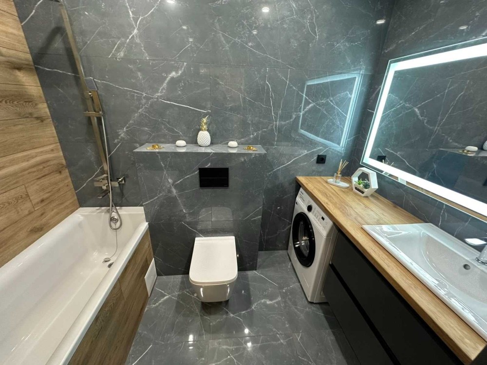 ванна кімната з новим стильним гарнітуром;