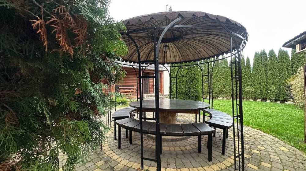 Є місце для парковки. Альтанка. Піч. Газон. Квітник. Смачна джерельна вода.