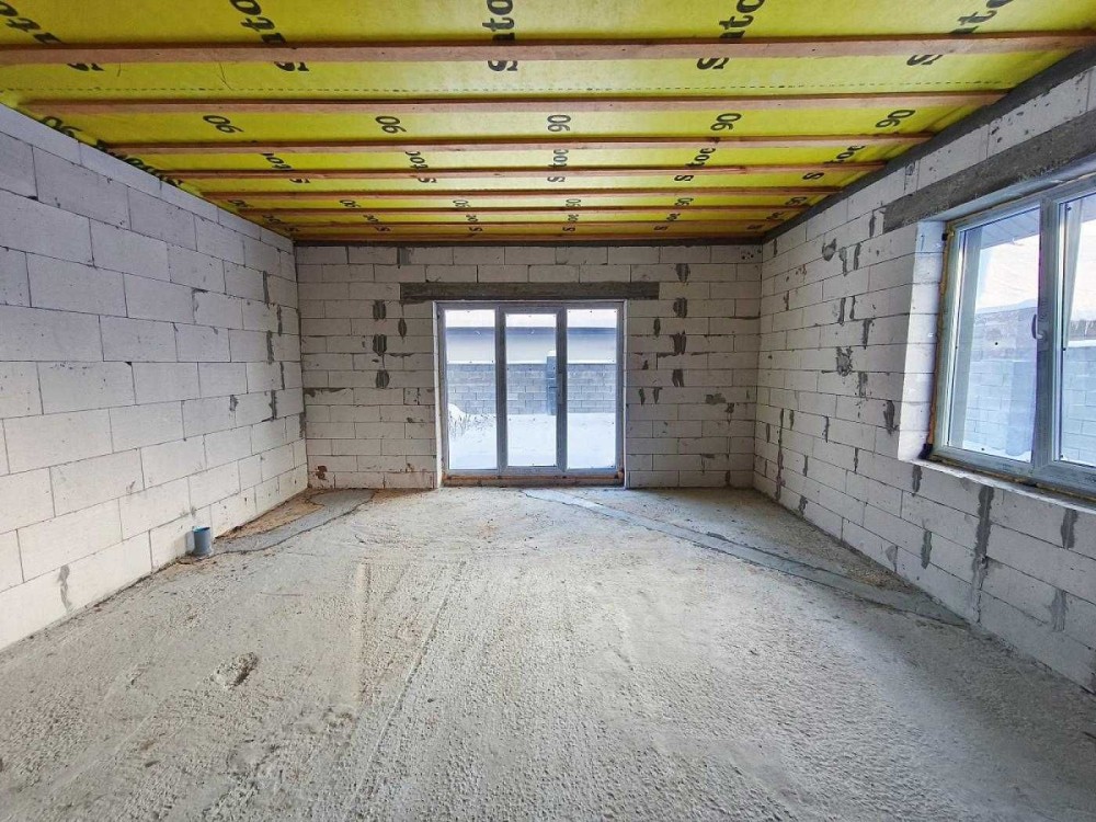 Одноповерховий будинок має зручне планування: прихожа, кухня-вітальня, 3 кімнати, великий санвузол, а також високе горище де можна зробити мансардний поверх.