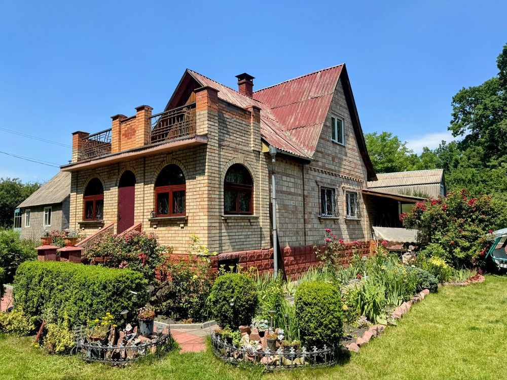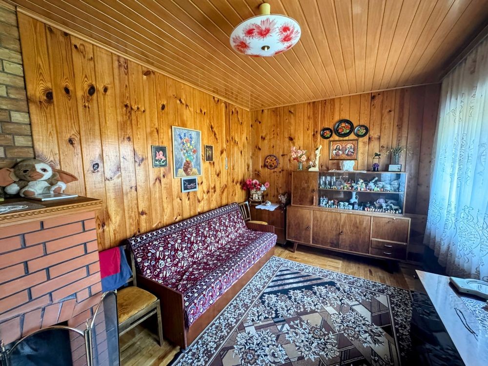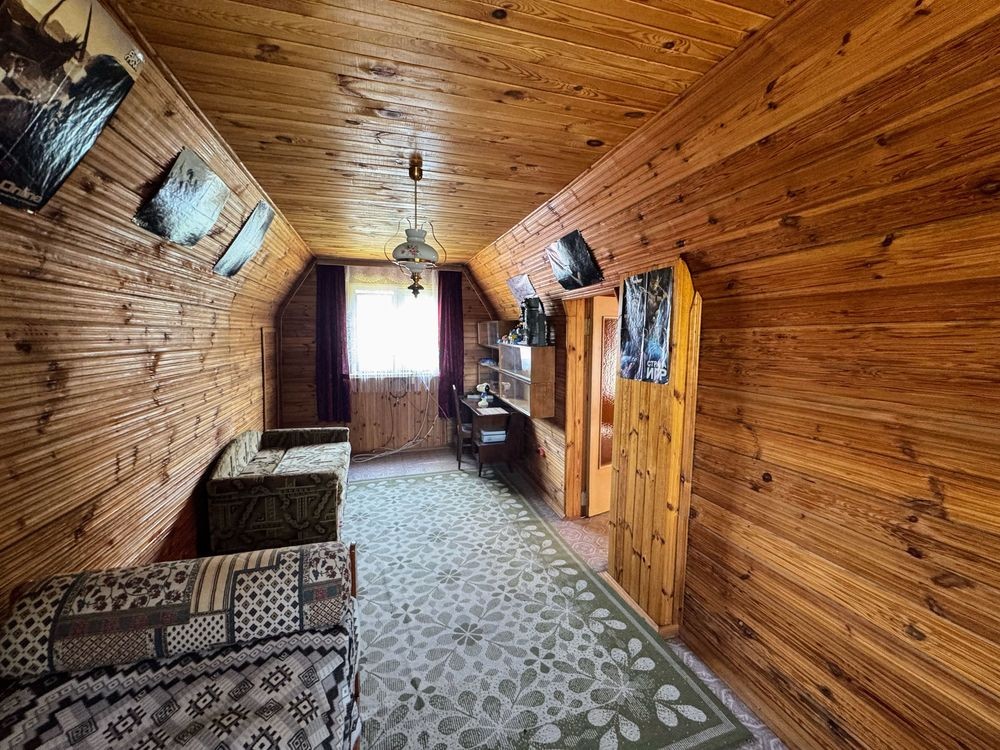 Основний будинок площею 73 м? побудований "на совість" у кінці 80-х. Фундамент - бетон моноліт, стіни - якісна цегла. Два поверхи: на першому — дві спальні та простора камінна зала з пічкою, яка рівномірно обігріває весь будинок. Повна автономність у будь-яку пору року це не гучні слова, а абсолютна реальність із цим будинком.